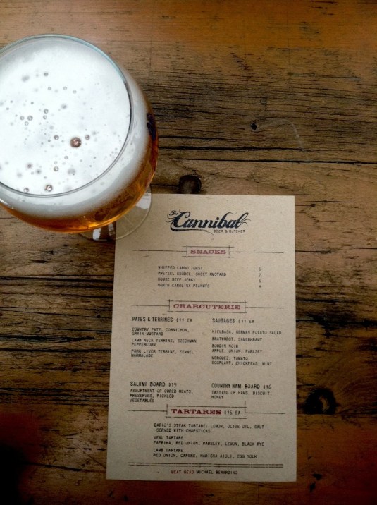 We leave Central Park, strolling through the Upper East Side. Walking begets hunger, so we take the six train to midtown for dinner. Going on recommendation from best friends Paul and Nastya (who were in NYC two weeks earlier) we check out The Cannibal beer & butcher  (29th – between Park and Lex) offering pates, terrines, full pig’s head to gnaw on, and as the name suggests, an extensive beer list. Seated in the garden, we order up the recommended Brooklyn Sorachi Ace (beer),  and my loyalty to Great Lake Brewery’s Imperial Dortmunder gets tested, hard. I do thoroughly enjoy Brooklyn Summer Ale, but Sorachi Ace is tops. So good, I order two more.