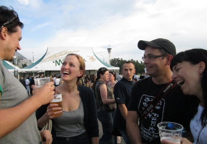 The venue, basically the parking lot/square for the Kazan Circus, is split into two sections; a drinking (as in booze) area further away from the stage, and non-drinking section up close. Not to stereotype here, but the drinking section is close to capacity while the crowd up front is rather sparse for such a large event. Rumor has it, the (now former) president of Russia – Dmitry Medvedev – is mingling among the non-drinkers.  I keep on eye out around the beer tents to see if he’s sneaking brewskies.