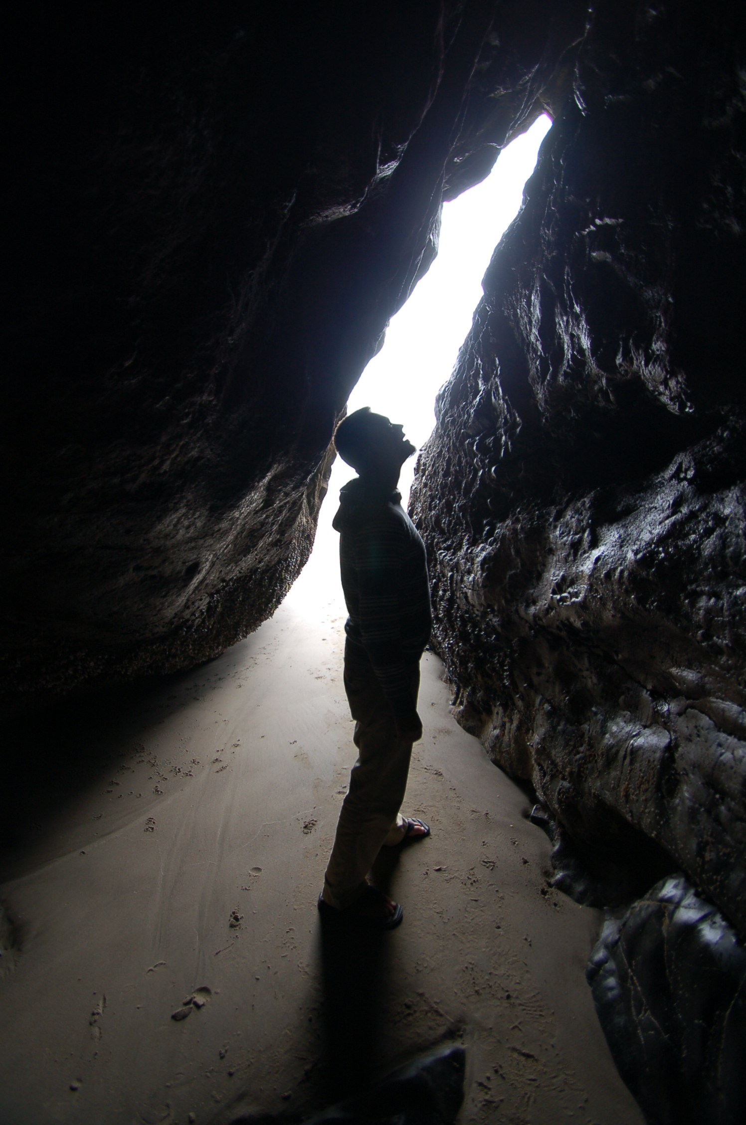 A hidden spot discovered by my brother-in-law (Clark) just a few minutes south on the 101, is simply stunning,  even in the misty showers. With ‘Goonies’ in mind, we explore some caves carved and dug out by the ebb and flo of the tide. The area is remote, possibly because of the weather, or the necessity to adhere to a tide-chart to visit.