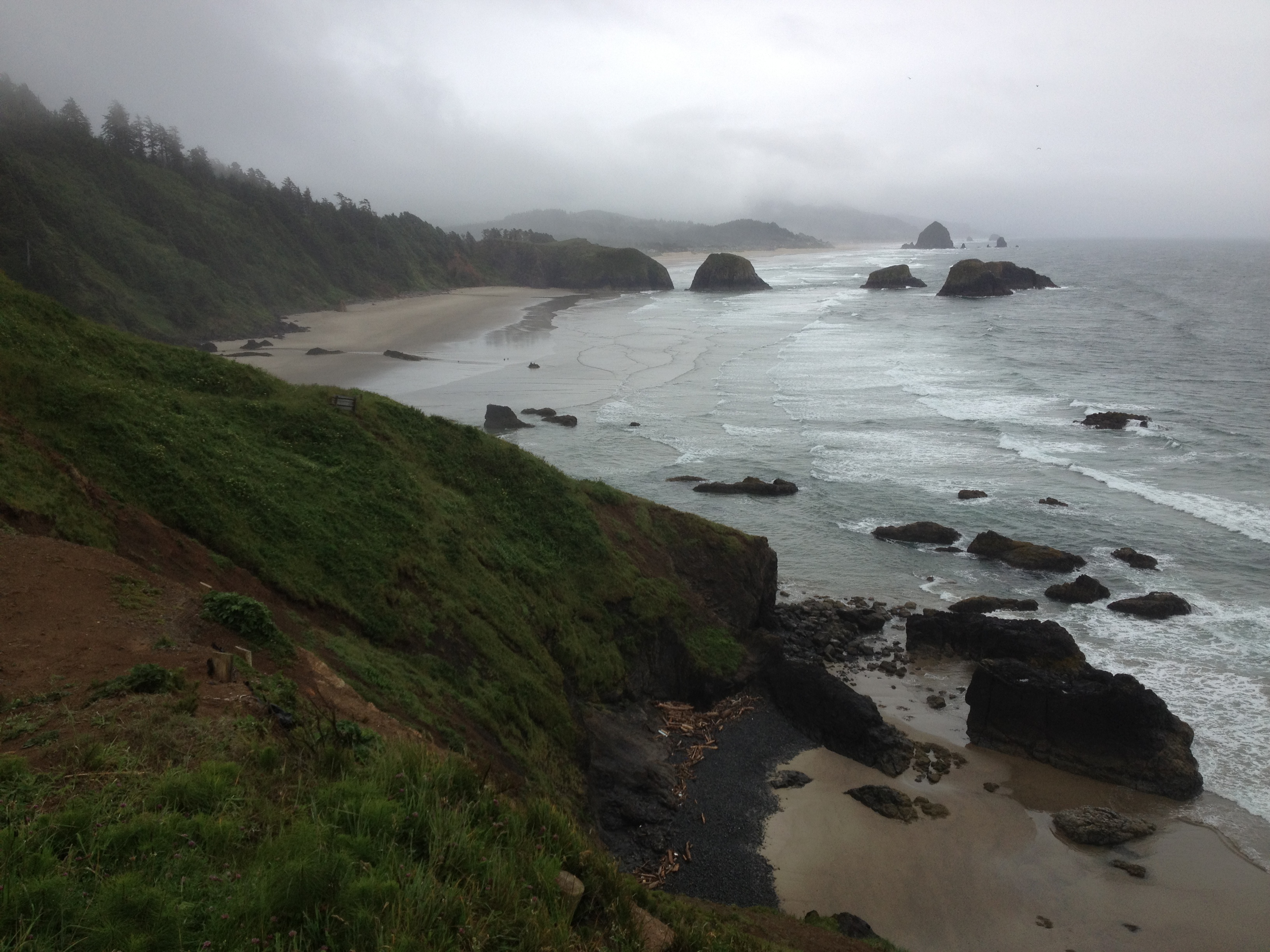 The relentless salty mist, and whipping winds soak your clothes, then turns off, leaving a picture perfect grey/green – fjord/ocean landscape with star monolith ‘Haystack Rock’ rising in the distance. It’s beautiful, lucid, a bit of coastal Maine, shades of Scotland, but uniquely Oregon.
