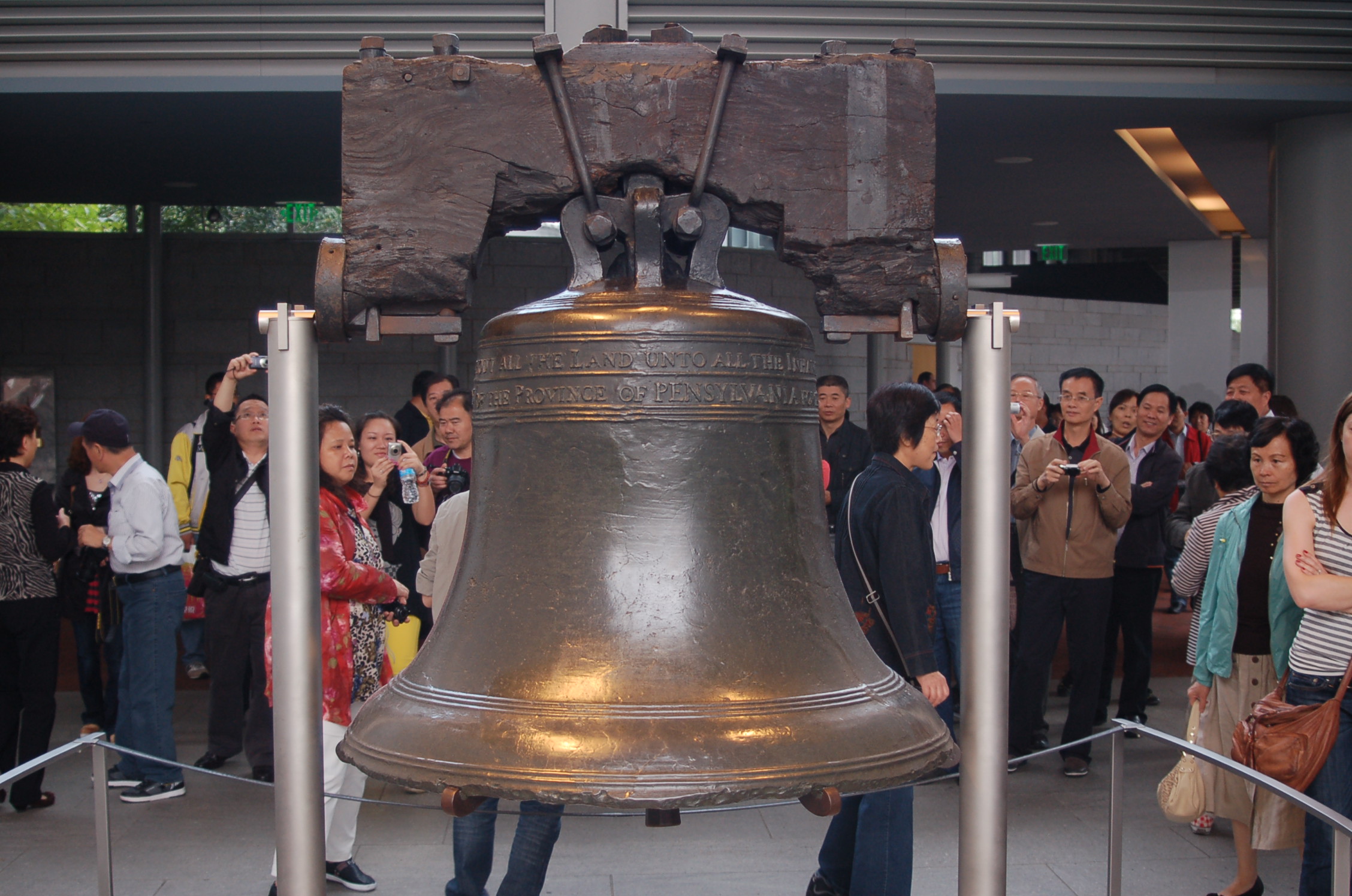 Marti and I stroll to the real Liberty Bell, skipping some of the model exhibits while a tidal wave of tourists builds behind us, passing quickly on our flanks.