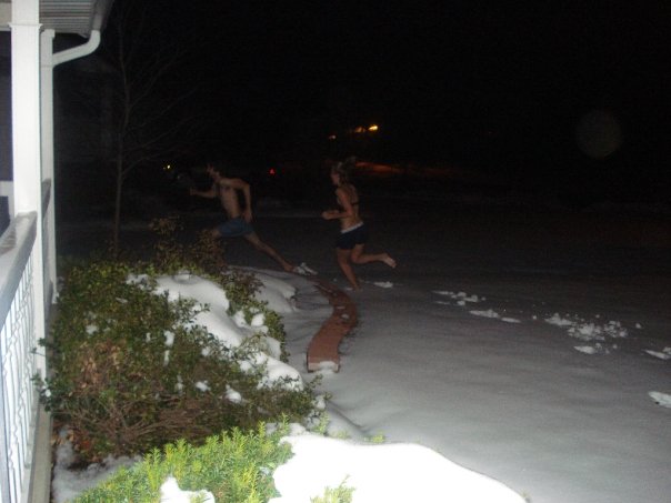 In ’08 the losers of the Wii boxing championship have to do a full lap around the house in their underwear…in 25 degree weather with a foot of snow on the ground.