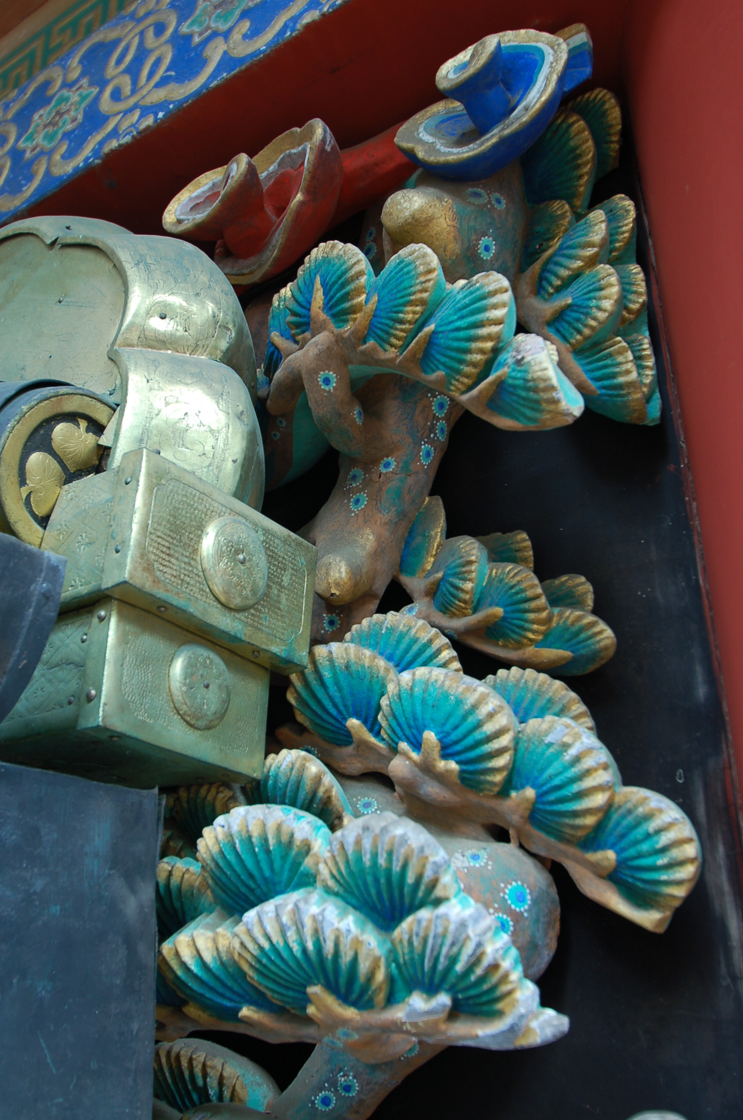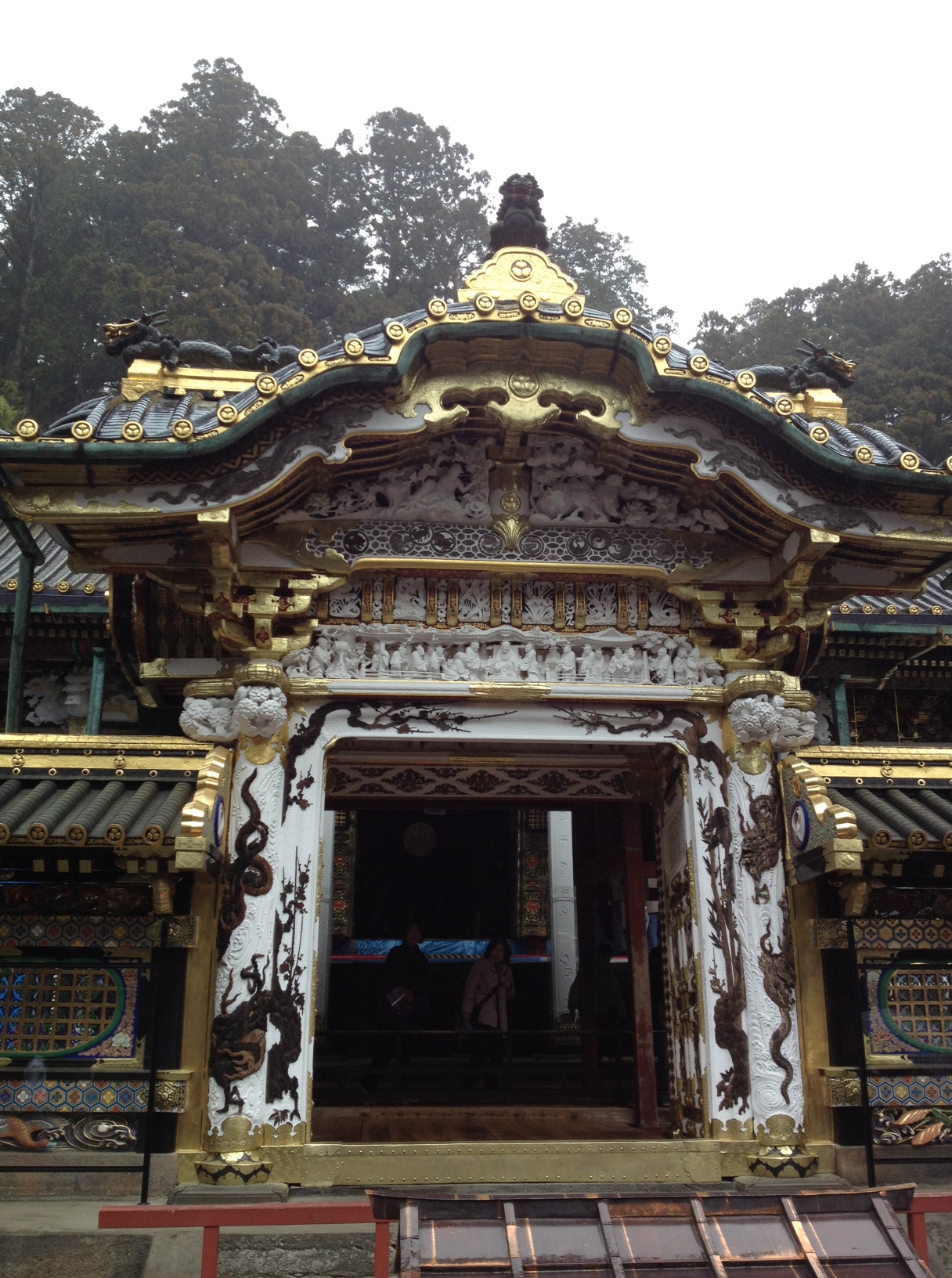 Toshogu Shrine: a noticeable change in style occurs. Gone are the simplistic, somber hues of the previous Japanese temples, scared off by the more colorful Chinese-influenced intricacies, and ornateness.
