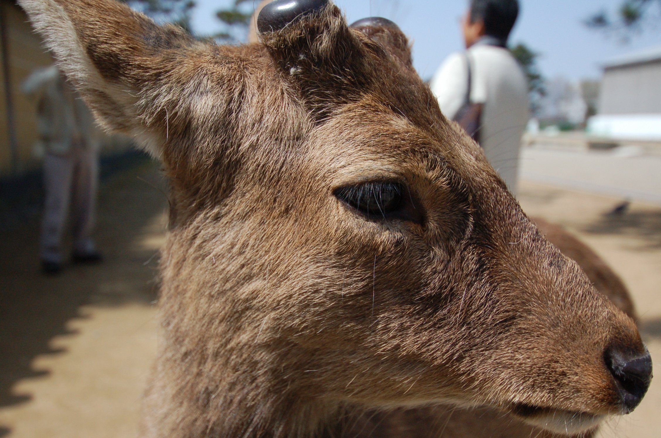 The gregarious deer just wander wherever they want, pooping/peeing freely. Women sell cookies to tourists, to feed the deer, for more pooping. They’re pretty mangy (the deer, not the cookie women), these four-legged free-loaders.
