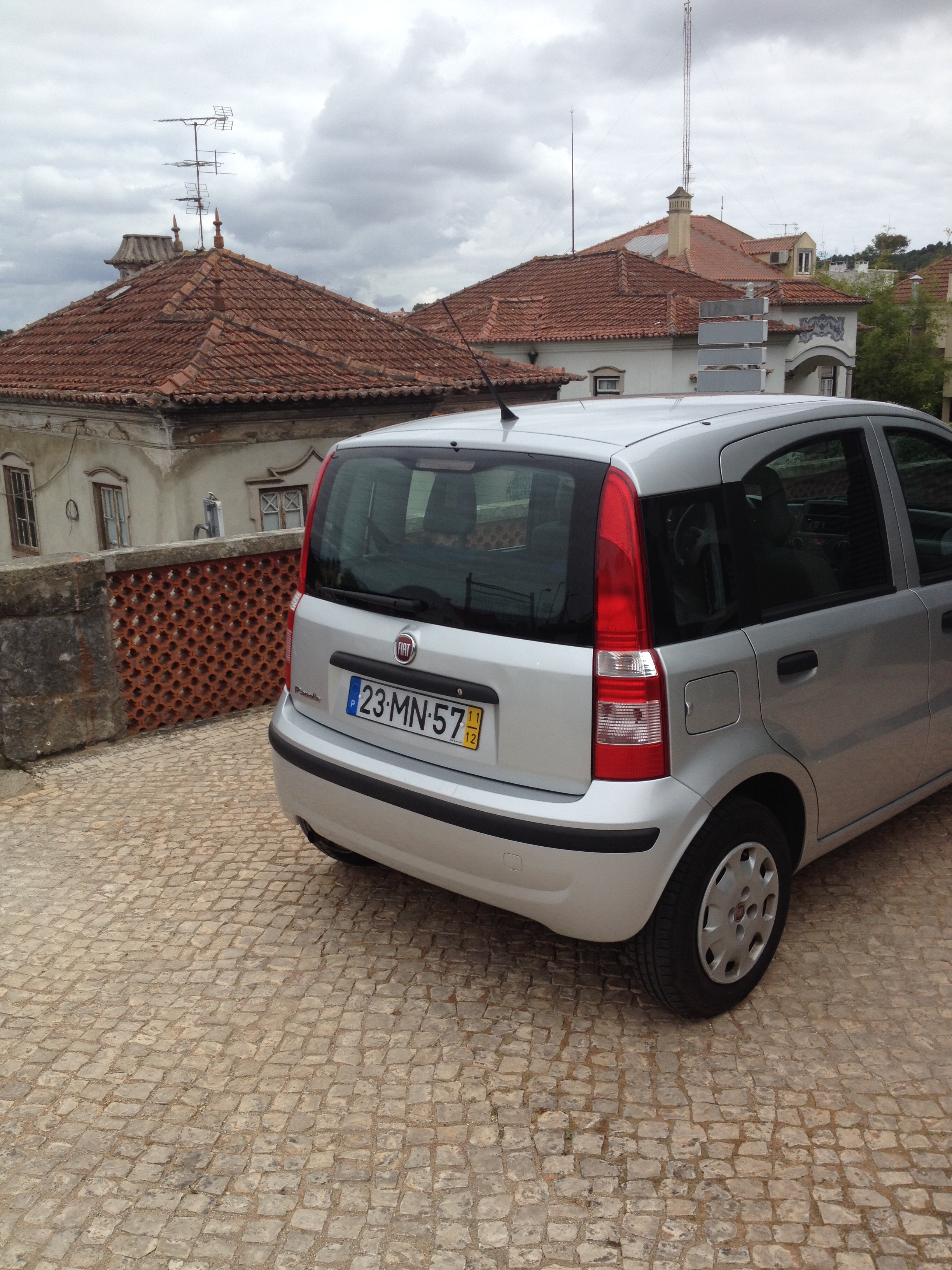 Metro to Lisbon airport to pick up our awaiting chariot in the form of a Fiat Panda that’s about as aerodynamic and agile as a living room with wheels, filled with Oprah clones.